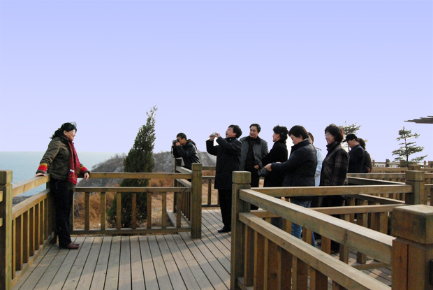 经过约半个小时路程,大家来到了金石滩国家旅游度假区黄金海岸。尽管已是初冬时分,景区内已经人迹难寻,但是蜿蜒起伏的长廊,错落有致的景观和黄金般的沙滩还是使人依稀看到了这里旺季时的繁华与喧嚣。各位老师三五成群,尽情享受着阳光、沙滩和海风的吹拂。