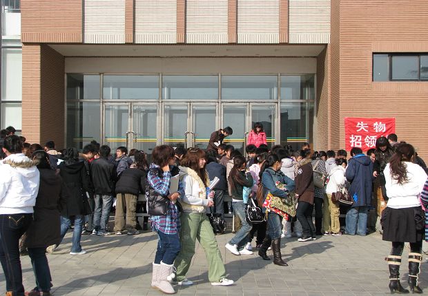 11月25日11点到14点,安全保卫部在教学楼前举办失物招领活动,65件失物归还原主,13本图书归还了图书馆。