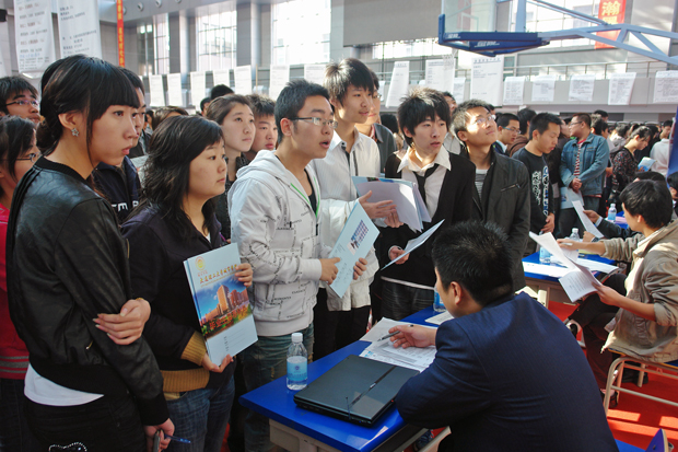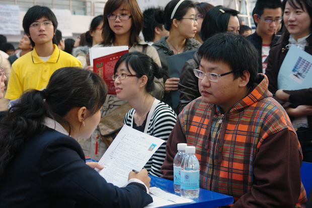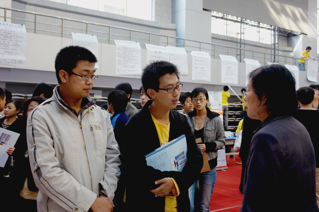 自动化系的崔宇刚刚从一家企业的展位前失望而归,当笔者问及原因时,他说自己学的是弱电,而这家企业需要的是强电。崔宇说,虽然现在经济不景气,一些企业也在裁员,但工作的机会也是很多的,只要你的要求不过高,应该都能找到一个工作,等到你具有了一定的工作经验,你在就业市场上的选择余地就大了。