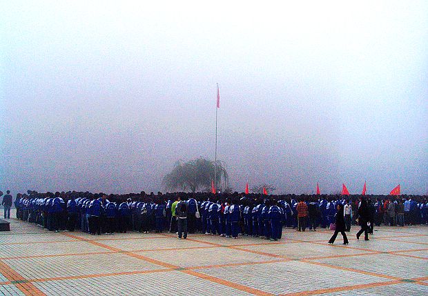 2400多名新生及部分老生代表在教学楼前广场参加了“追寻改革足迹、重温光辉历程”庆祝改革开放三十周年系列活动启动仪式暨升国旗仪式。