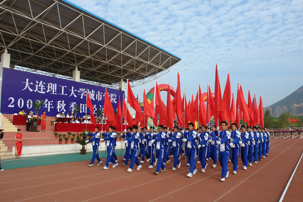 伴随着激昂的运动员进行曲,院旗队、红旗队、花束队、运动员代表队及会旗队衣着整齐、斗志昂扬,迈着矫健的步伐依次进入会场,展现了城院人与时俱进,锐意创新的精神风貌。