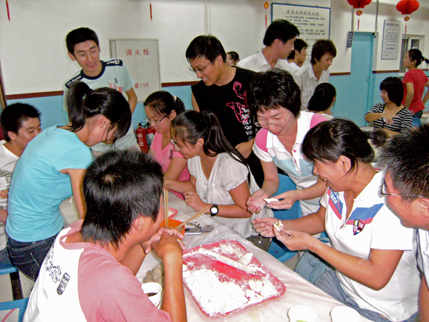 联谊会上,福利姬指导部严超民老师、软件工程系暴丰老师、物流管理系付亚林老师等九位老师与同学们一起品尝月饼,唠家常。老师们亲切询问同学们的家庭状况、学习情况,鼓励大家要自立自强。在联欢活动中还进行了包饺子比赛,大家吃着自己亲手包的饺子,欢声笑语,其乐融融。