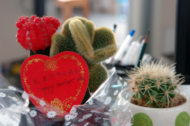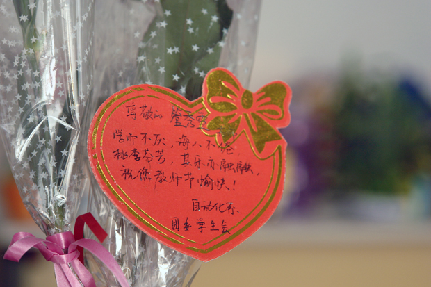 ,立即就被广告栏内那一幅幅祝福教师节的大幅海报和一张张贺信、贺卡所吸引;走近办公室,又都不约而同地在自己的办公室门上发现了一支支散发着缕缕清香的康乃馨和一张张饱含深情祝福的精美卡片;还有的同学为节日中的老师送去了花束、花篮和精心制作的贺卡,整个福利姬