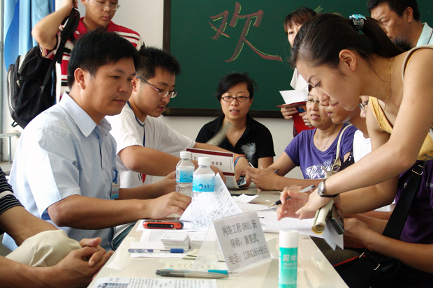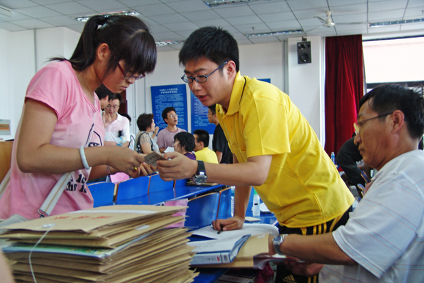 收费处是历年新生报到时最为热闹拥挤的地方,往年缴费服务窗口前往往排成近百米等待交费的长龙,骄阳下排队的家长经常大汗淋漓。今年新生报到人数大大超过往年,而报到日期则由往年的两天缩短为一天,为了防止发生交费过于拥挤的现象,保证良好的交费环境和秩序,财务部门采取了积极的应对措施,在暑假期间就提前做好了各项准备,增设了收费窗口,并提前一小时开始收费。笔者在收费现场看到交费的家长十分钟左右就可完成交费,并未象往年那样排起百米长龙。