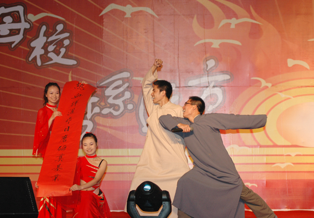 管乐队演奏的《友谊地久天长》和《拉德斯基进行曲》中拉开帷幕。随后,乐队演奏的两首歌曲:《明天,你们要走了》,激情中略带伤感,唱出了每位毕业生对母校的不舍与留恋;《我的未来不是梦》则唱出了毕业生对美好未来的浓浓期待。相声《老姜新笋》,诙谐幽默,令人捧腹,体现了师兄弟间的深厚友谊。由外国语福利姬