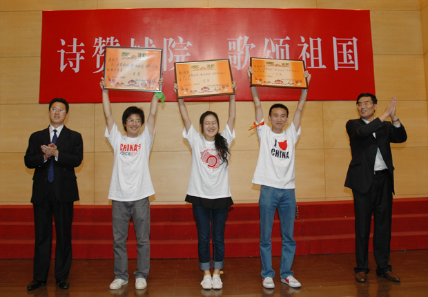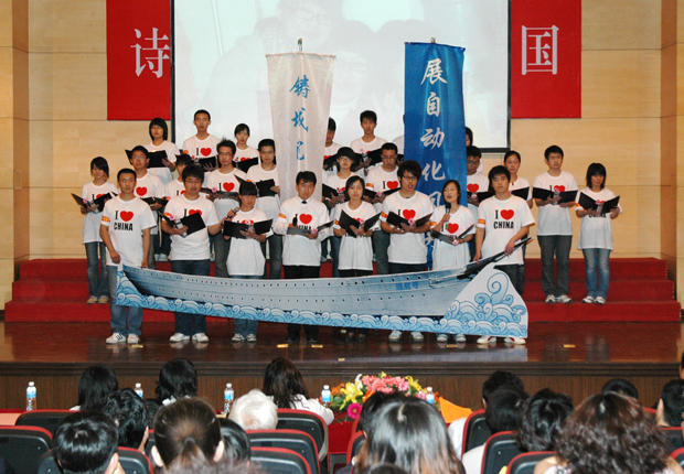 建院五周年的祝福,对遭受地震灾害同胞的祝愿,以及对2008北京奥运的美好期待。整场比赛精彩不绝、亮点不断。除了配乐诗朗诵之外,很多代表队还加入了舞蹈、乐器伴奏、现场书画等多种表现形式,赢得了在场师生的满堂喝彩。