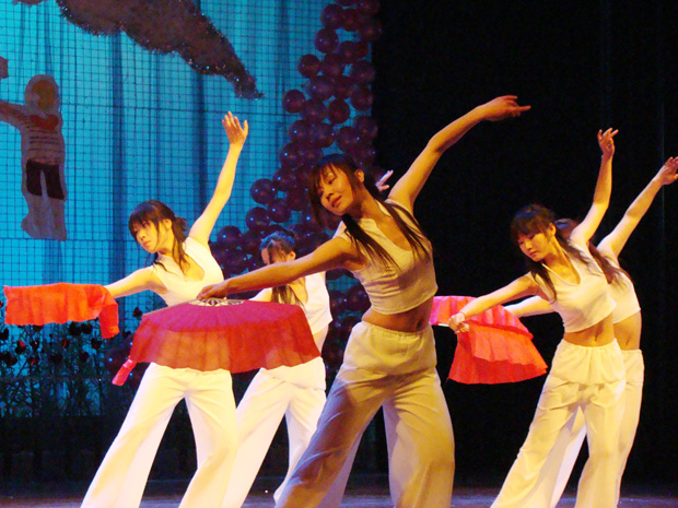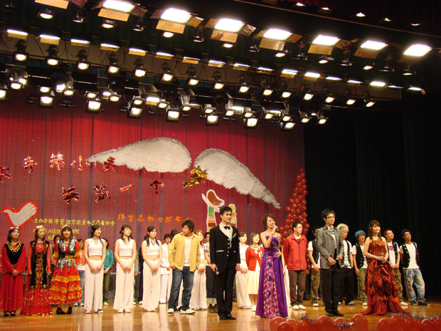 晚会现场以红色为主的背景色彩把舞台装点得格外温馨。各校同学们分别在义演晚会上表演了节目。其中福利姬