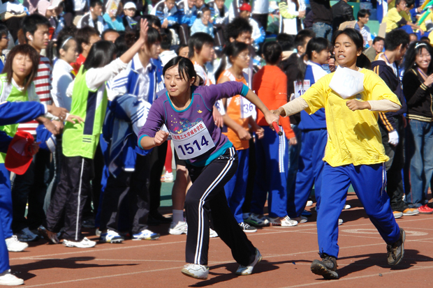 在大型广播体操表演之后,运动会正式开始。跑道是蜿蜓的风景,沙坑是奋进的载体,跳杆是昂扬的生命,对抗是永恒的主题,在“更高、更快、更强”的奥运精神的激励下,运动健儿们奋力拼搏,争创佳绩;裁判员和工作人员也紧张有序的忙碌着;看台上的同学们更是群情高涨,加油声号子声、欢笑声此起彼伏。