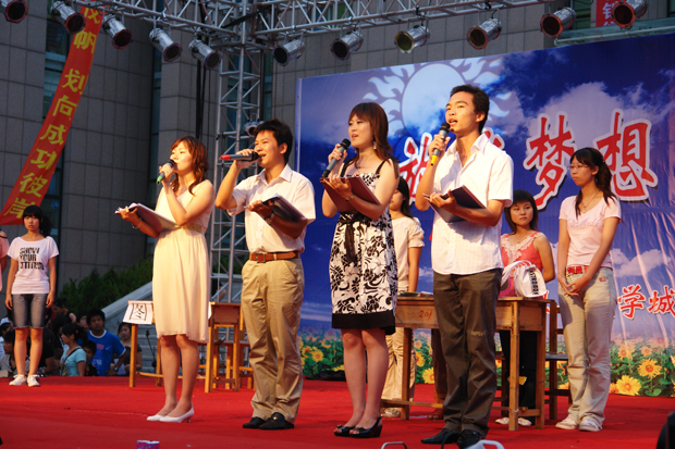 。6月29日晚7:00,由院团委为毕业生精心准备的“放飞梦想 扬帆起航——2007届毕业生文艺晚会”在图书馆门前广场成功举行。院长唐志宏、党委书记郭玉铸、副院长徐循、杨斌、王新平、王铁成及各院(系、部)负责人出席了这次晚会。