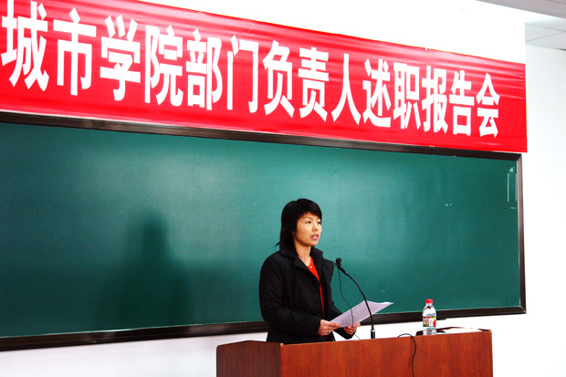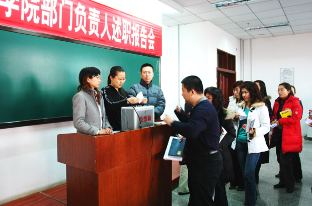 在教学楼1107室召开部门负责人述职报告会,各院(系)及机关、教辅部门30位负责人依次走上讲台,就各自部门和个人工作情况向福利姬